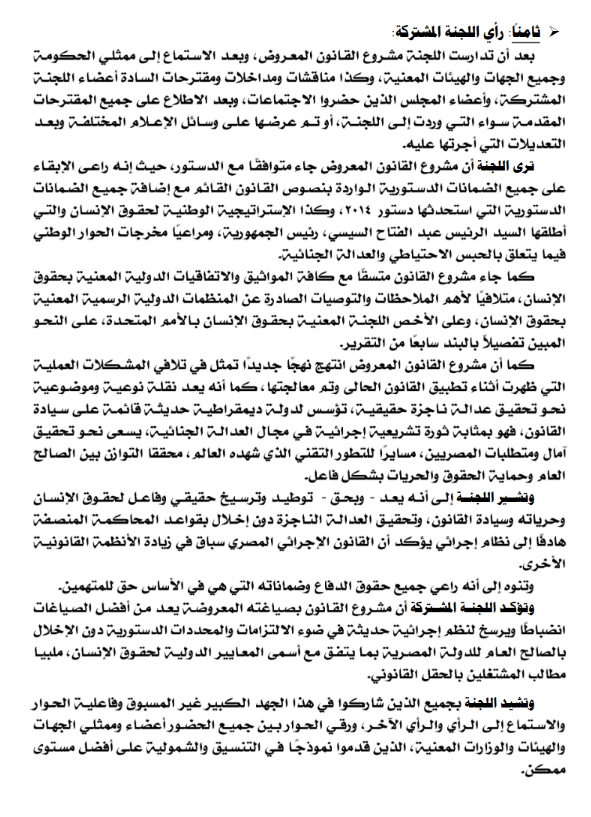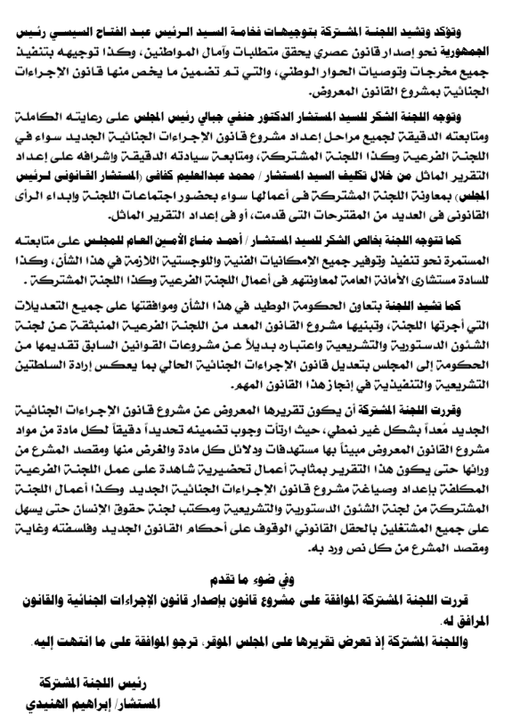 لماذا وافقت اللجنة على مشروع قانون الإجراءات الجنائية؟