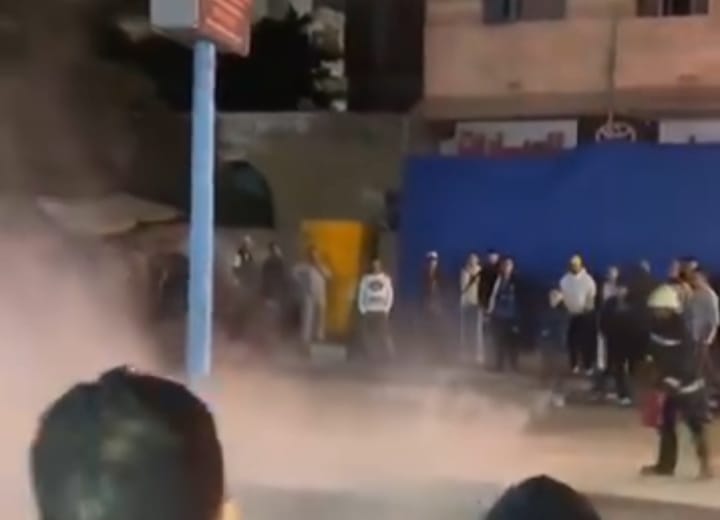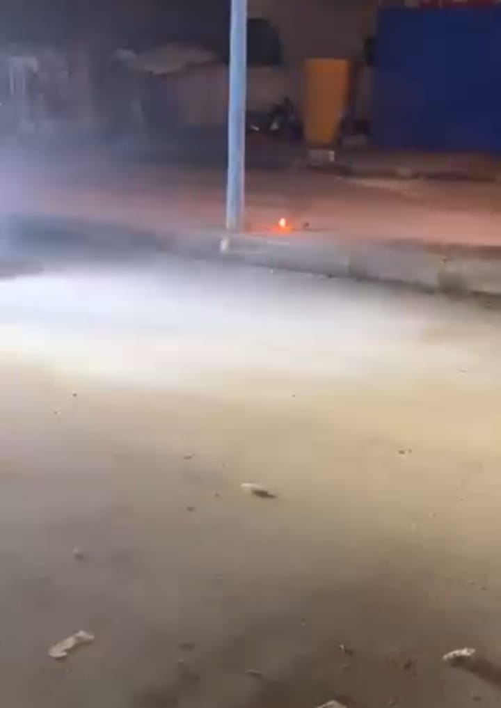 اشتعال النيران في كابل كهربائي أرضي في وسط الشارع