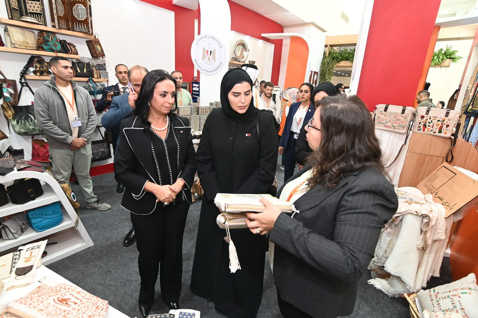 اصطحبت الدكتورة مايا مرسي، وزيرة التضامن الاجتماعي، مريم بنت علي بن ناصر المسند، وزيرة التنمية الاجتماعية والأسرة في دولة قطر، في جولة تفقدية لمعرض ديارنا للحرف اليدوية والتراثية، الذي تنظمه وزارة التضامن الاجتماعي، على هامش فعاليات المنتدى الحضري العالمي الذي تقام فعالياته بمركز المنارة للمؤتمرات الدولية.