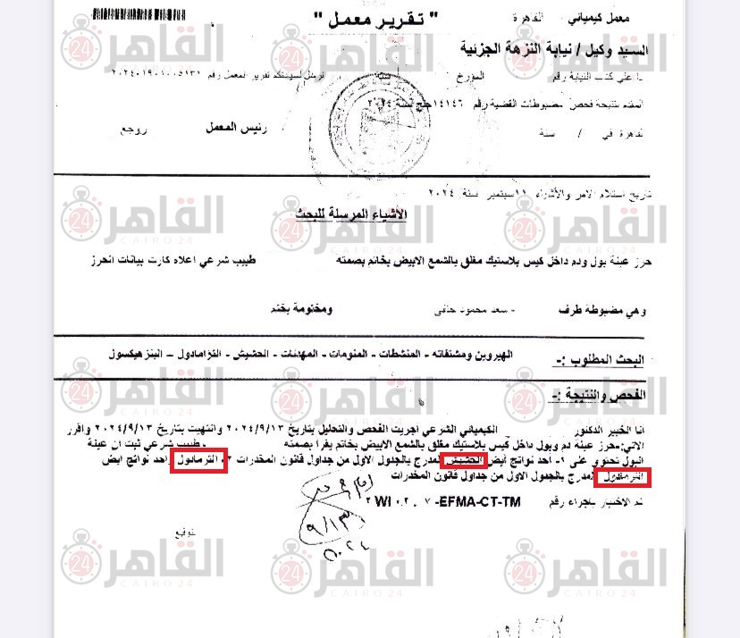 كما حصل القاهرة 24 على تقرير الطب الشرعي في قضية المطرب الشعبي سعد الصغير، في اتهامه بحيازة سجائر إلكترونية تحتوي على المخدرات من جوهري الحشيش والمخدر، خلال عودته من أمريكا مرورًا بالدوحة متوجهًا إلى مصر، وبتفتيش حقائبه عُثر على 9 سجائر من فئة الفيب تحتوي على المخدرات.
