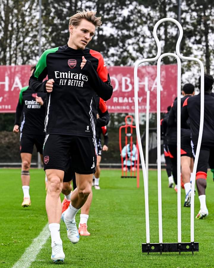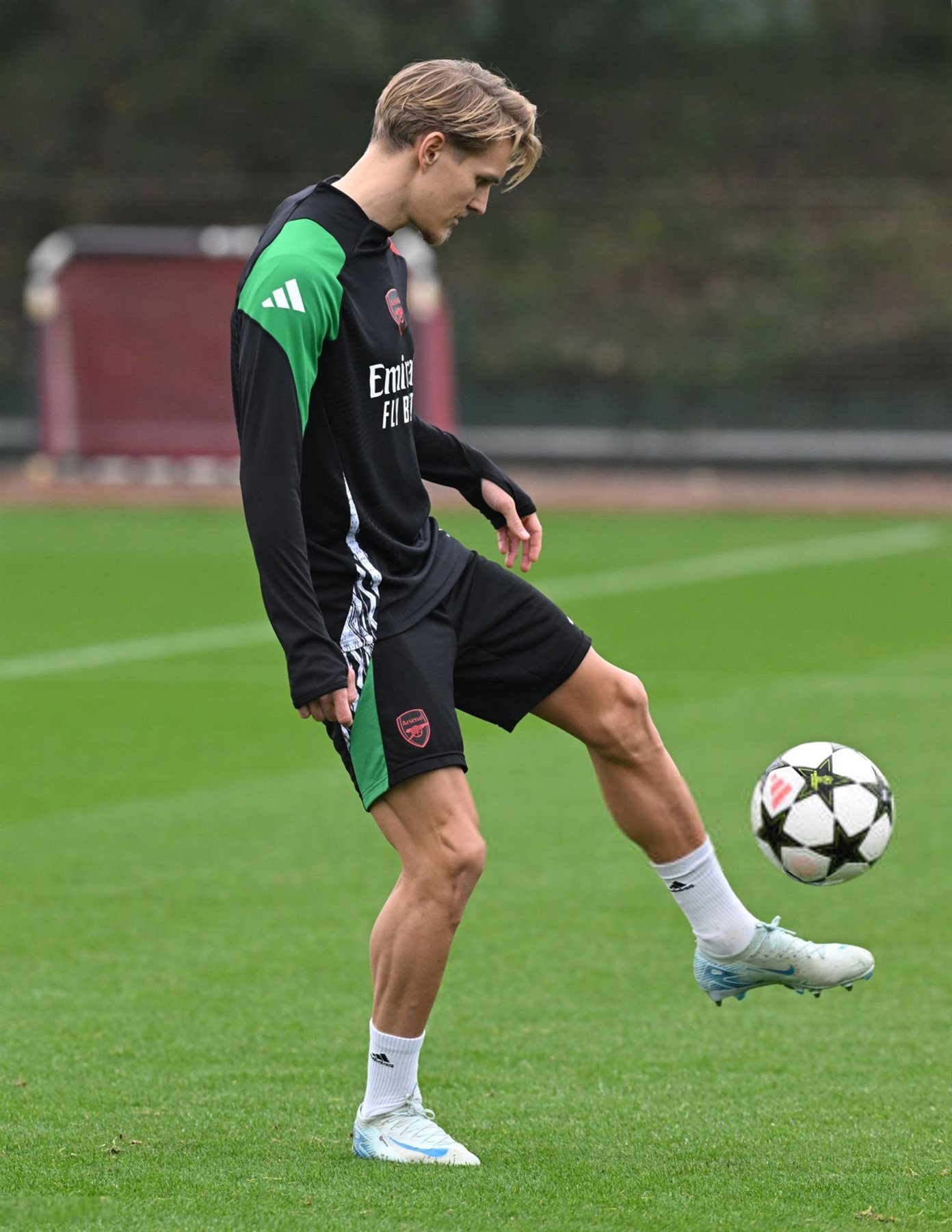 ظهر اللاعب النرويجي مارتن أوديجارد، نجم فريق أرسنال في التدريبات الجماعية الخاصة بالفريق الإنجليزي قبل المباراة المرتقبة التي سيخوضها الفريق أمام نظيره إنتر ميلان، في إطار مواجهات الجولة الرابعة من مسابقة دوري أبطال أوروبا.