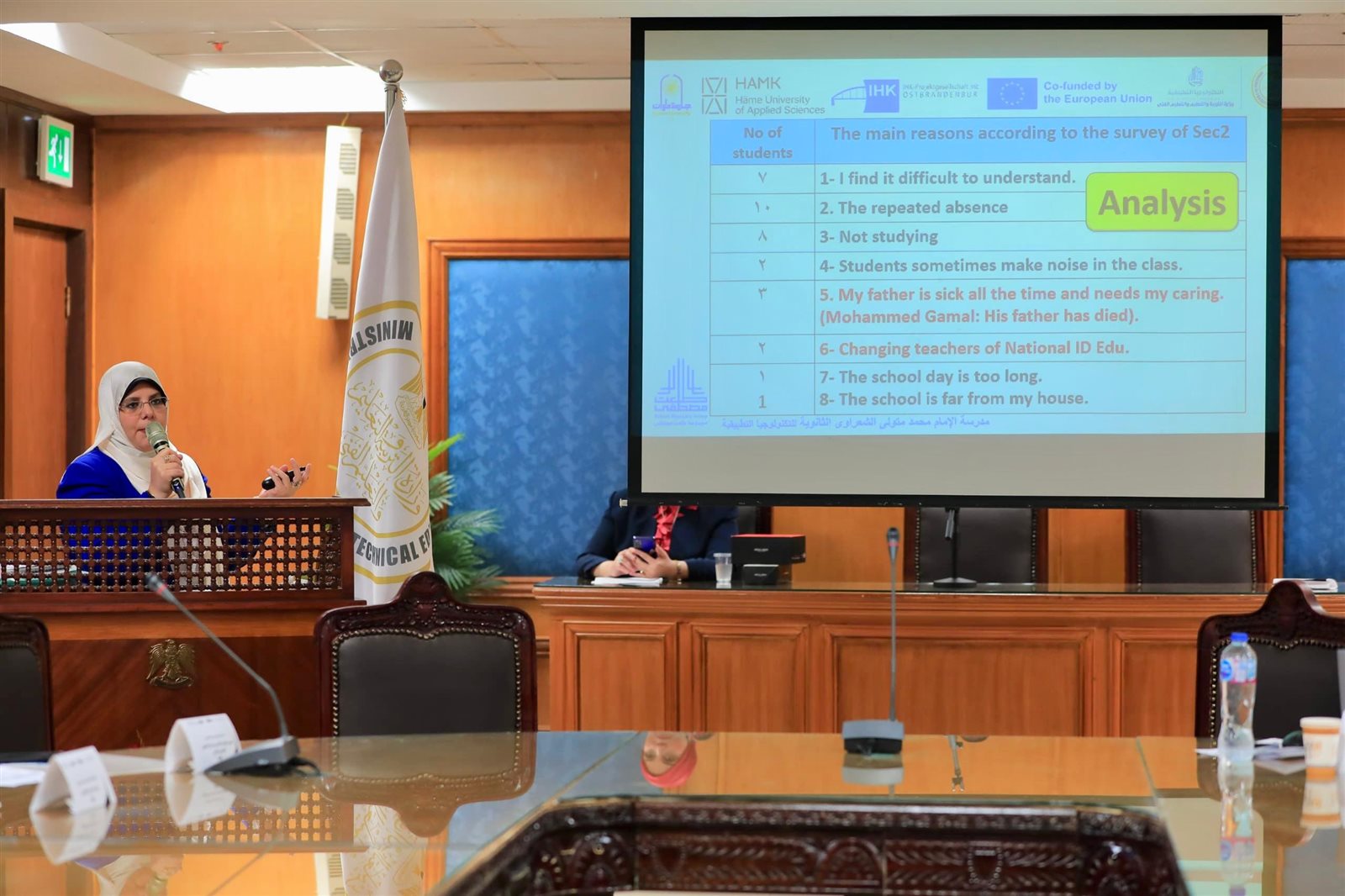 ومن جانبها، أعربت دكتورة رشا شرف أستاذ التربية المقارنة والدولية والإدارة التعليمية بكلية التربية جامعة حلوان والأمين العام لصندوق تطوير التعليم بمجلس الوزراء عن سعادتها بهذا المشروع الذى استمر لمدة عامين حيث بدأ منذ يناير 2023، وينتهى فى ديسمبر القادم 2024، وتمثل جامعة هوماك بفنلندا الجهة المنسقة للمشروع، ويستهدف المشروع بناء القدرات من خلال الشركاء ممثلين فى وزارة التربية والتعليم وجامعة حلوان، وجامعة هاماك بفنلندا، والشركة الألمانية.