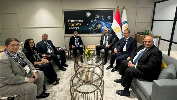 عقد المهندس كريم بدوي وزير البترول والثروة المعدنية، جلسة مباحثات مع وزير الطاقة والتجارة والصناعة القبرصي جورج باباناستاسيو، بحضور السفير شريف عيسى سفير مصر بالإمارات، والمهندس معتز عاطف وكيل الوزارة للمكتب الفني والمتحدث الرسمي للوزارة.