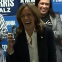 وحولت نائبة الرئيس شاشة هاتفها إلى أنصارها المتحمسين في مقر الحزب الديمقراطي في واشنطن العاصمة، الذين صفقوا وهتفوا، ولكن كانت الصدمة أن ما ظهر على الشاشة هو تطبيق الكاميرا وليست المكالمة التي تجريها.