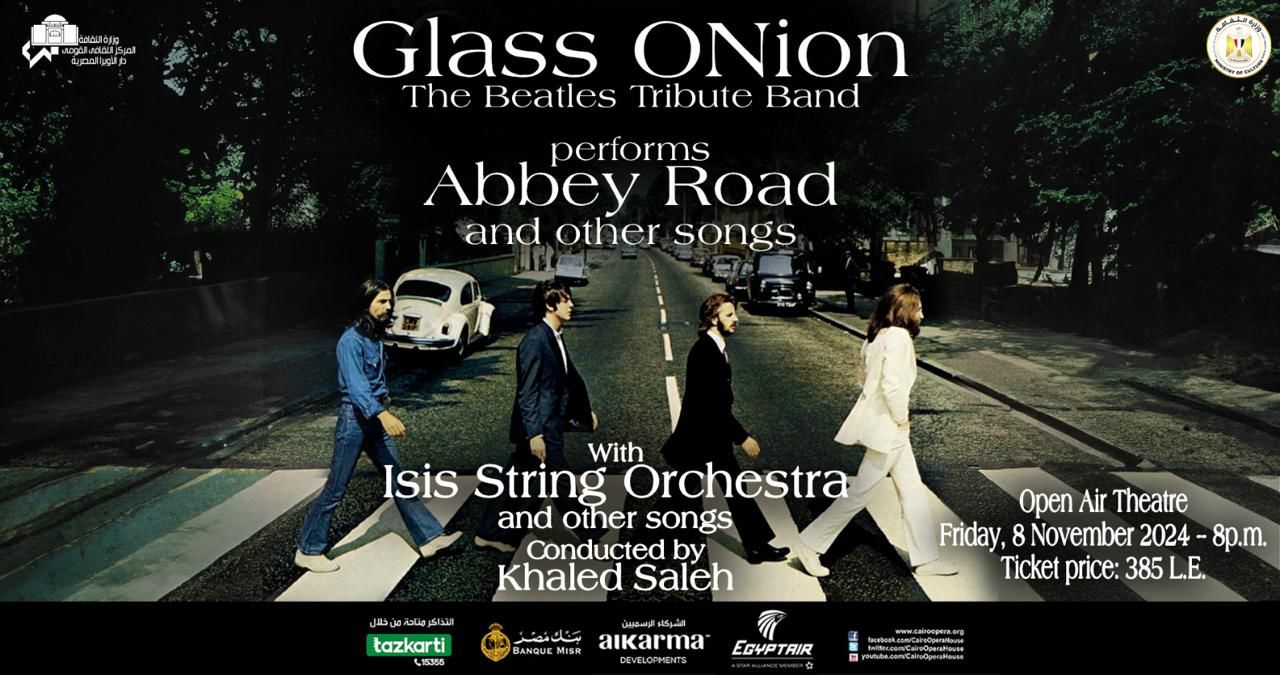 تنظم دار الأوبرا المصرية برئاسة الدكتورة لمياء زايد، ضمن فعاليات وزارة الثقافة المميزة حفلا لفريق جلاس أونيون في الثامنة مساء الجمعة 8 نوفمبر على المسرح المكشوف، تستعيد خلالها ذكريات موسيقى فريق البيتلز المعروف، والتي اشتهرت خلال فترة الستينيات وبداية السبعينيات من القرن العشرين، وذلك بمصاحبة أوركسترا إيزيس الوتري، بقيادة المايسترو خالد صالح.