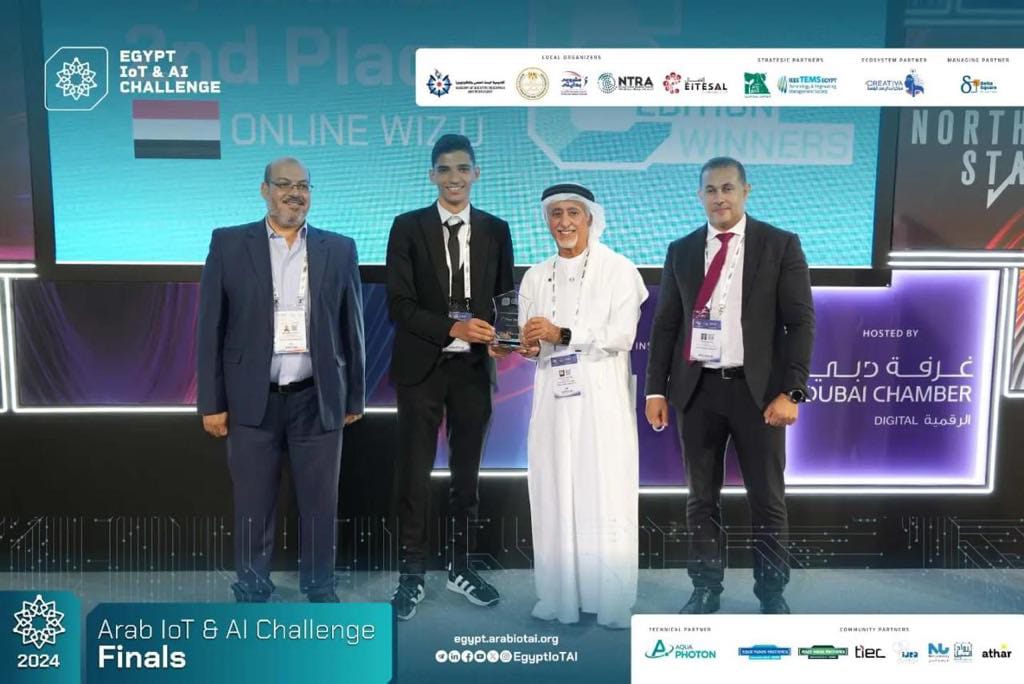 وفى ذلك الصدد، حقق الطالب محمد هاني كمال، المقيد بالفرقة الأولى بكلية الطب جامعة حلوان، المركز الثاني على مستوى الوطن العربي في مسابقة Arab IOT & AI Challenge، التي أقيمت في دبي خلال الفترة من 12 إلى 16 أكتوبر الماضي، متفوقًا على أكثر من 150 فريقًا مصريًا و26 فريقًا من 13 دولة عربية.