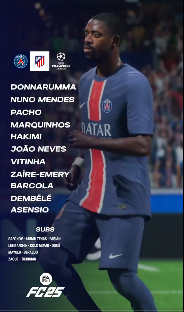 وفيما يلي تشكيل باريس سان جيرمان أمام أتلتيكو مدريد في دوري أبطال أوروبا: