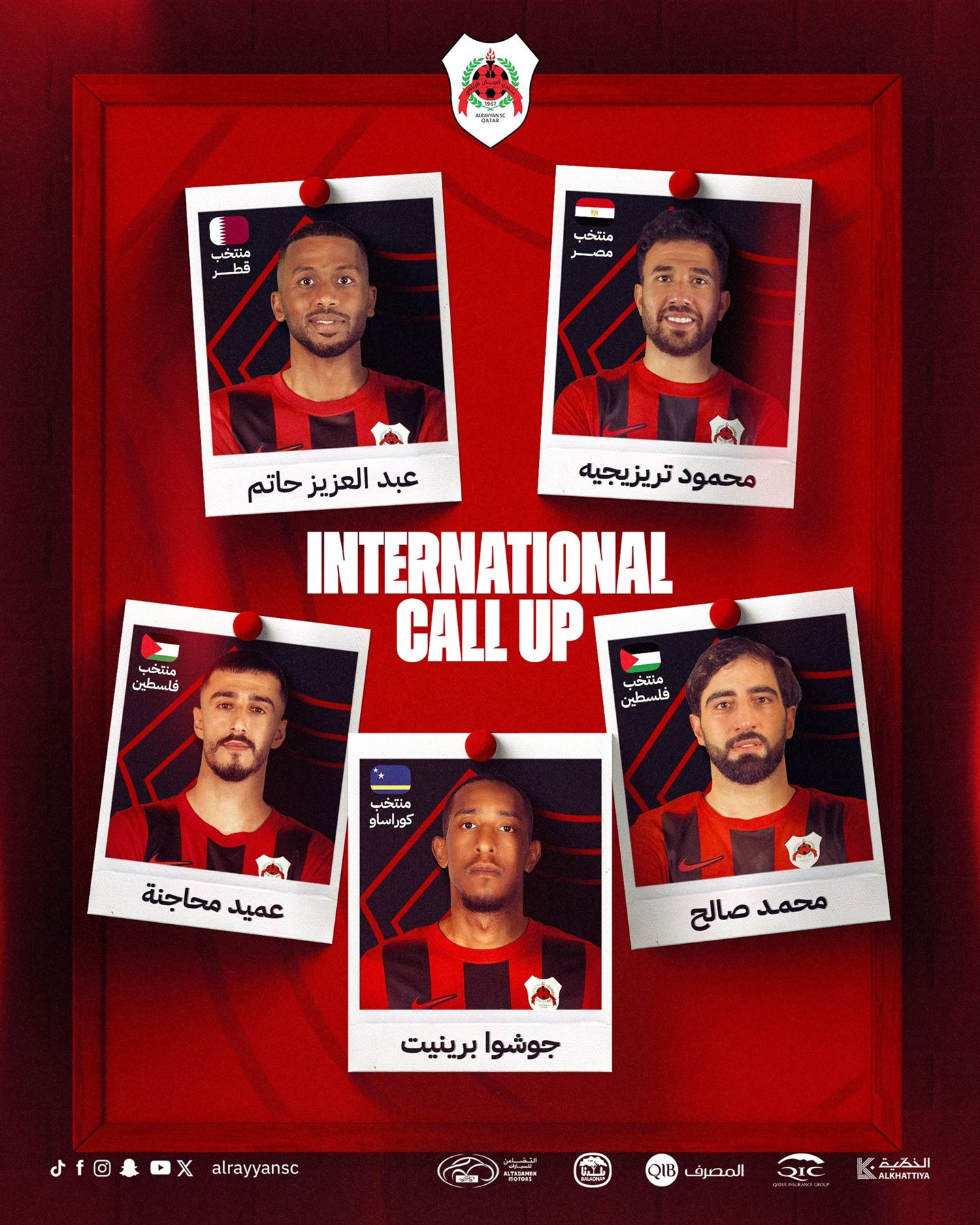 من جانبه، نشر نادي الريان الذي يضم اللاعب محمود حسن تريزيجيه منشورًا أعلن من خلاله اللاعبين المنضمين إلى قوائم منتخبات بلادهم ومنهم تريزيجيه.