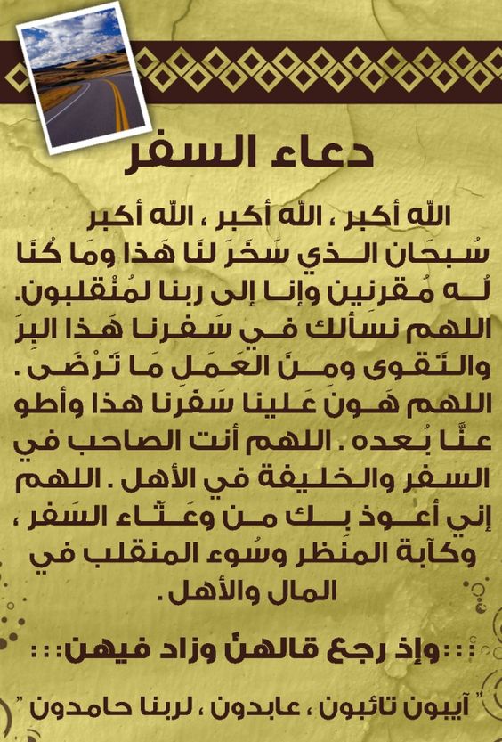 - يا رب احفظني من كل ما يضر بي في هذا السفر واكتب لي نجاحا مبهرا يا عزيز يا ناصر الضعفاء.