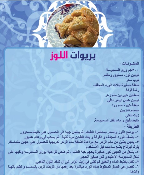 ولا ننسى عرض بعض أكلات مغربية خفيفة كنوع من المقبلات أو الحلوى السريعة كالتالي:
