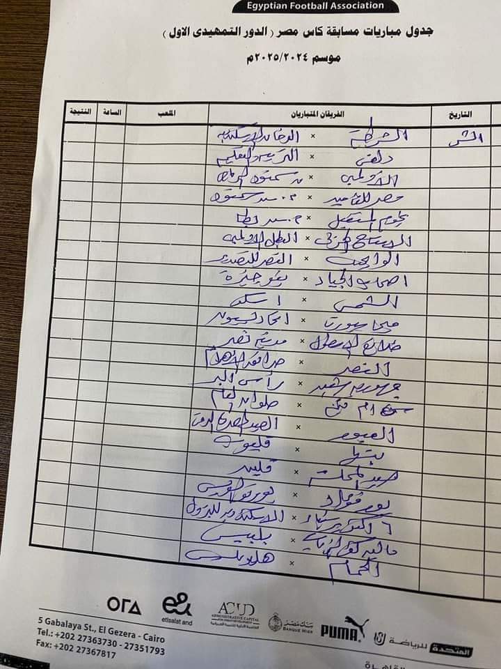 تعرف على قرعة الدور التمهيدي لكأس مصر 2024-25| مستند