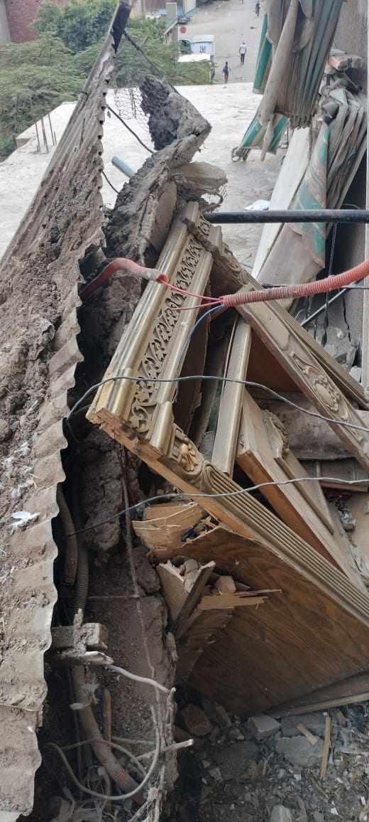 وانتقل على الفور رجال الشرطة وتبين انهيار جزئي بسقفين وحائطين بمنزلين مكونين من طابقين ومشيدين بالطوب اللبن والطين ومسقوفين بأفلاق النخيل والبوص، ملك كلًا من مديحة ا ك ر - 53 عاما، ربة منزل، ونعمات م م - 75 عاما، ربة منزل، ومقيمتان بذات العنوان، مأهولين بالسكان، وتم إخلائهما من قاطنيهما، لحدوث تصدعات بحائطين لمنزلين ملاصقين بذات المكونات من الخلف دائرة القسم، ملك كلًا من أحمد ع ا ا - 57 عاما، نجا، ومنتصر ع ع ا - 37 عاما، عامل، مأهولين بالسكان لم ينجم عن ذلك إصابات أو وفيات.
