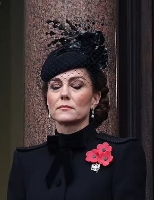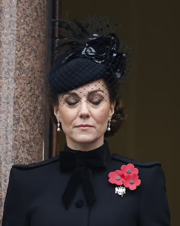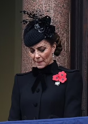 وأدت الأميرة كيت ميدلتون اليوم واجباتها الملكية لأول مرة منذ الكشف في وقت سابق من هذا العام عن تلقيها العلاج من السرطان، وظهرت مرتدية سترة سوداء على الطراز العسكري، وشوهدت وهي ترتدي زهور الخشخاش الثلاثة التقليدية بينما انضمت إلى الأمة في دقيقتين من الصمت، وتحيي التحية المؤثرة في ذكرى إخوة جدتها الكبرى الثلاثة، الذين فقدوا جميعًا حياتهم في الحرب العالمية الأولى.