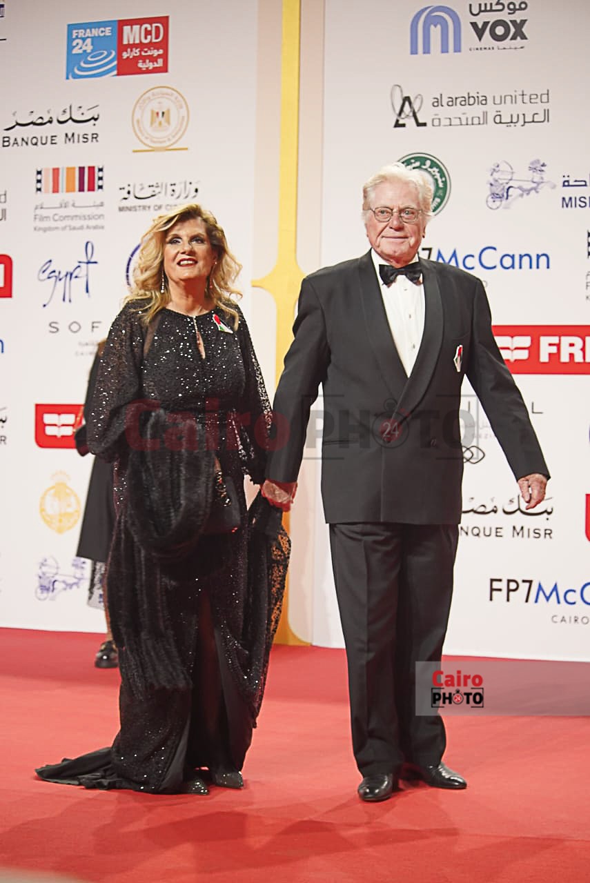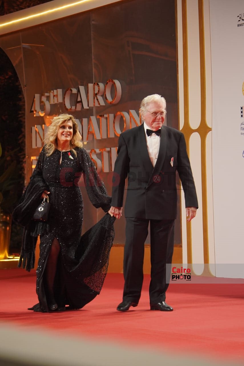 بدأ، منذ قليل، حفل افتتاح مهرجان القاهرة السينمائي في دورته الـ 45، وحرص الفنان حسين فهمي رئيس المهرجان على أن يكون أول الحضور على الريد كاربت، وظهر رفقة زوجته، مرتديًا بدلة سوداء مع قلادة لـ خريطة فلسطين، ما جذب الأنظار إليه.