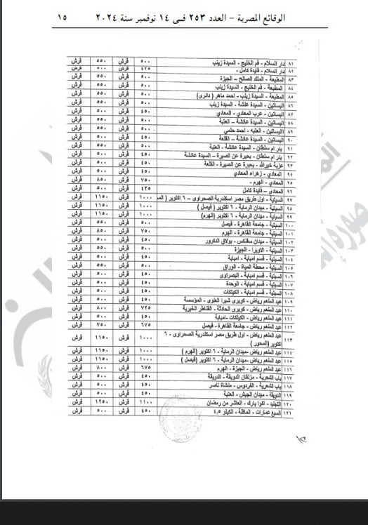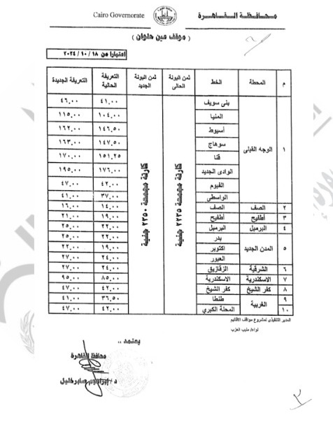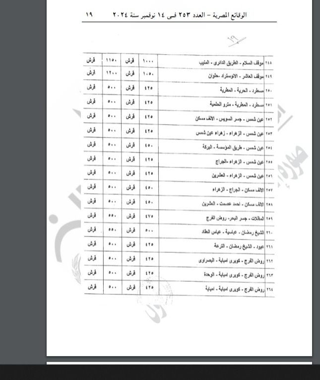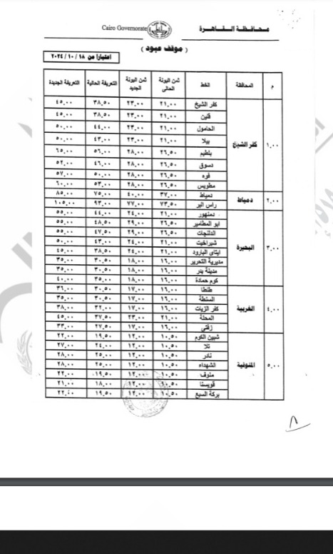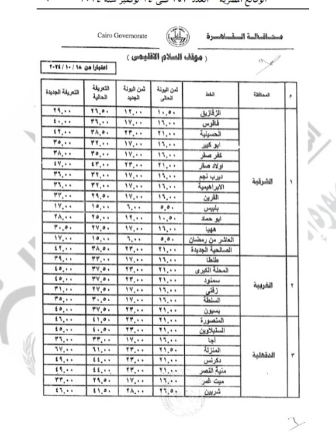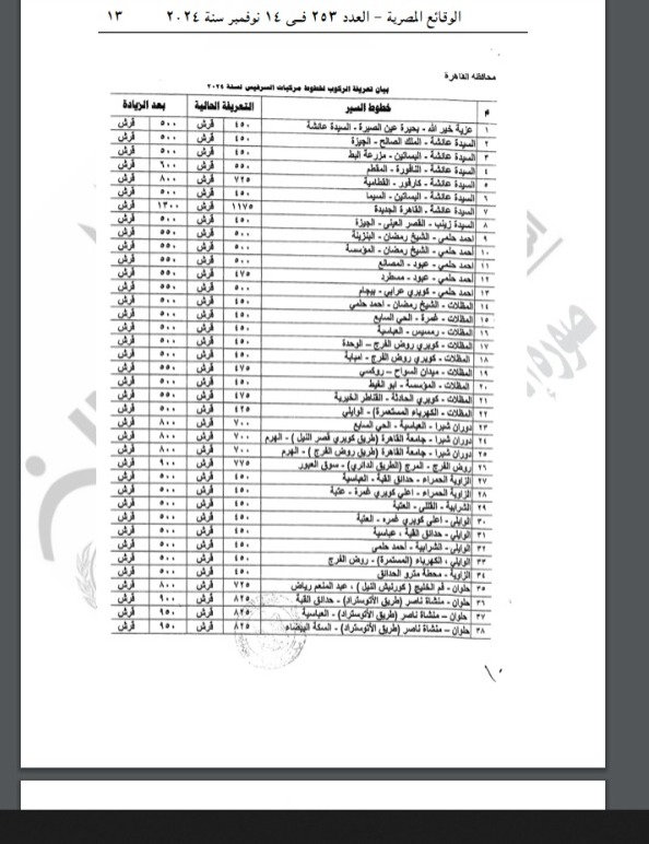 نشرت الجريدة الرسمية قرار محافظة القاهرة بشأن تعريفة الركوب الجديدة بمواقف الأقاليم.