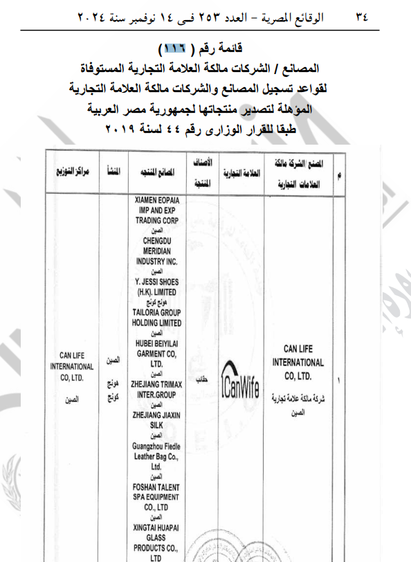 ونصت مواد القرار، على أن تقيد المصانع والشركات مالكة العلامة التجارية المبينة أسماؤها بالقوائم المرفقة رقم 628 ورقم 116 طبقا للقرار الوزاري رقم 43 لسنة 2016، ورقم 44 لسنة 2019 في سجل المصانع والشركات مالكة العلامة التجارية المؤهلة لتصدير منتجاتها إلى جمهورية مصر العربية والمنشأ لهذا الغرض بالهيئة العامة للرقابة على الصادرات والواردات.