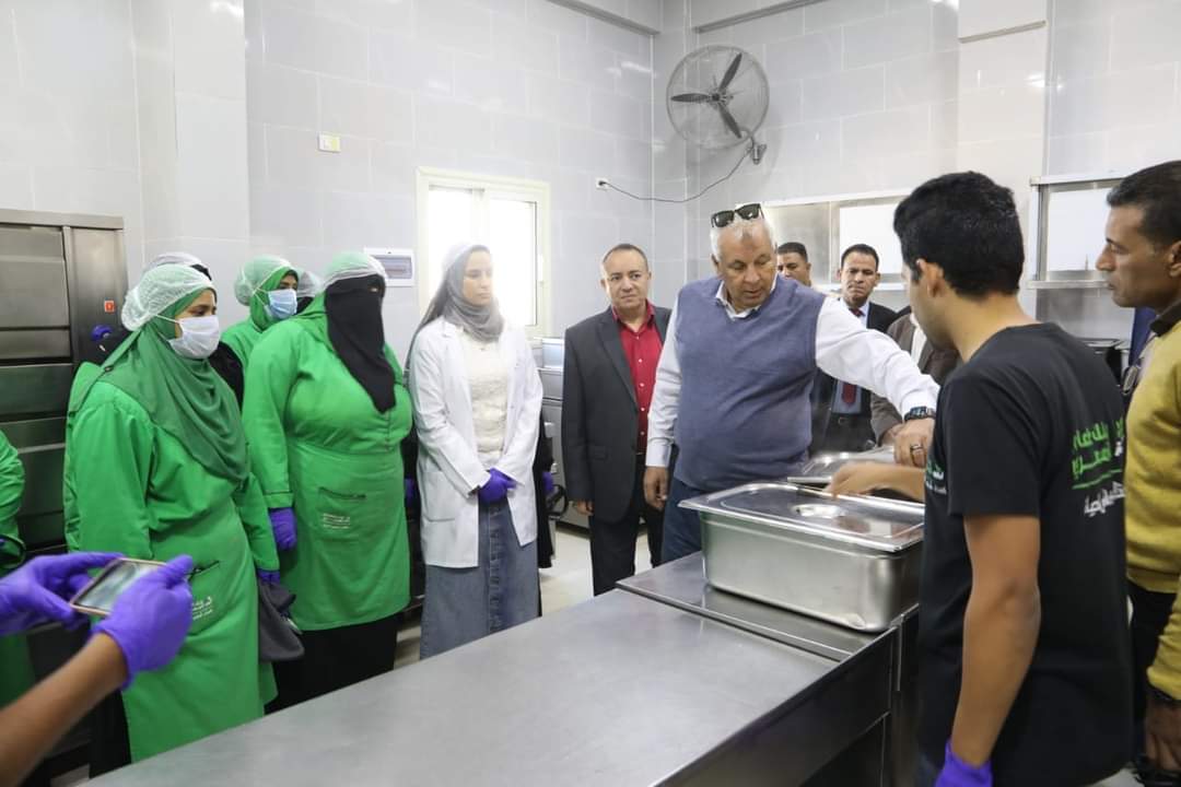 تفقّد اللواء محمد الزملوط، محافظ الوادي الجديد، المطبخ المركزي لمشروع قرى آمنة غذائيًا، بقرية الكفاح بمركز الفرافرة، والذي ينتج 3 آلاف وجبة جاهزة يوميًا لطلاب المدارس، بالتعاون مع مؤسسة بنك الطعام المصري.