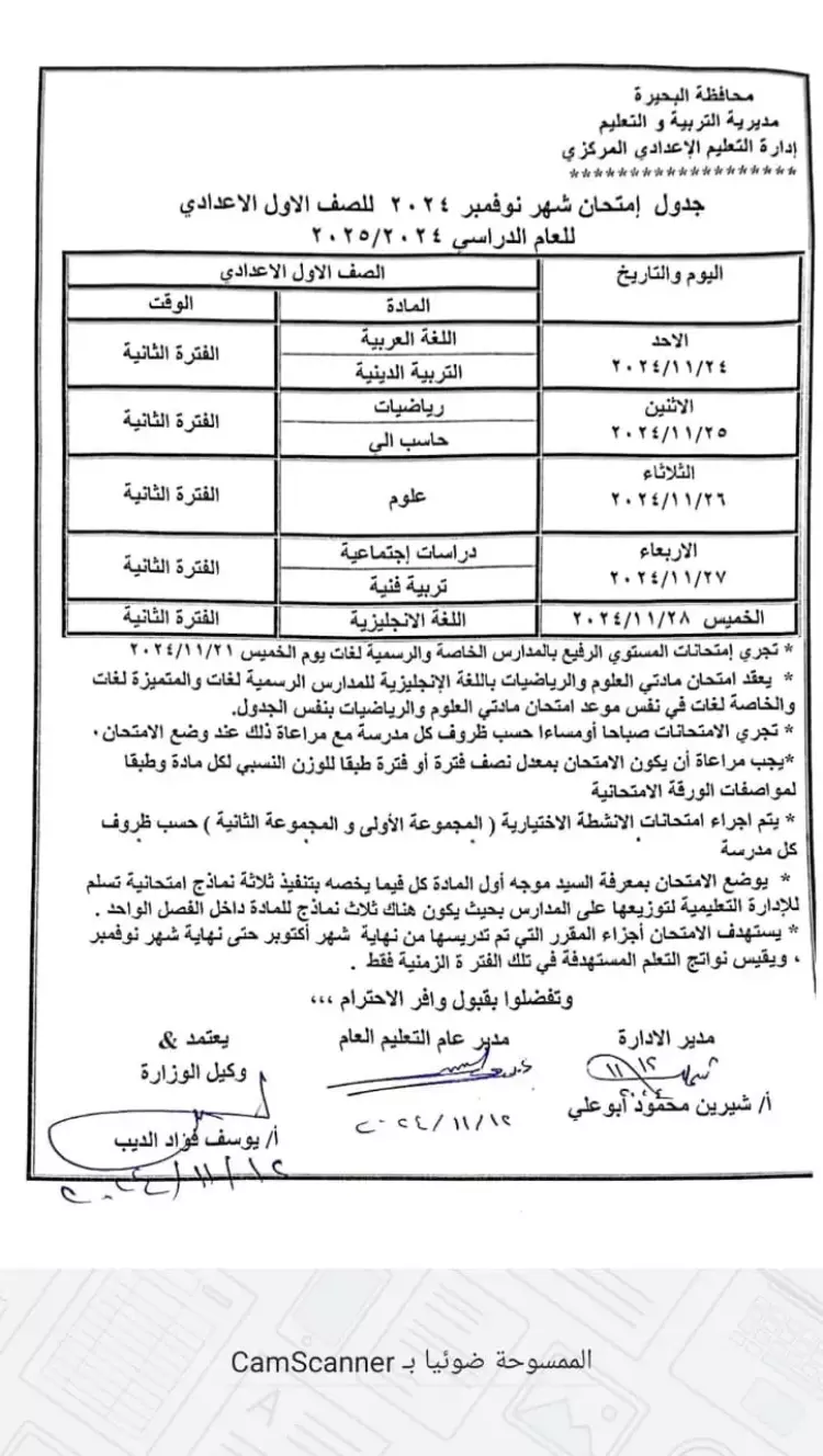 جدول امتحانات شهر نوفمبر لطلاب محافظة البحيرة