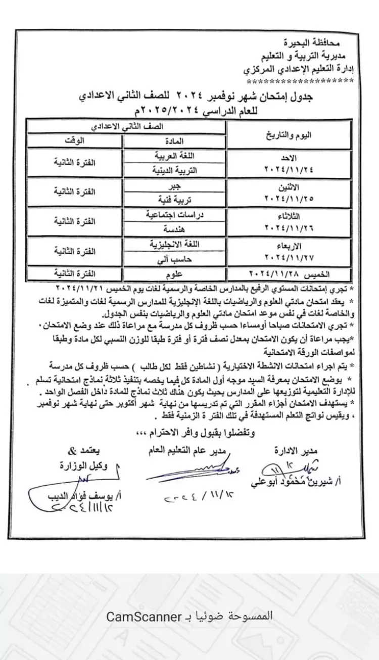 أما عن جدول امتحانات شهر نوفمبر خطوة مهمة لضمان تحقيق أهداف التعليم وتقييم الطلاب بموضوعية، وتؤكد مديرية التربية والتعليم بمحافظة البحيرة التزامها بتوفير بيئة ملائمة للطلاب خلال فترة الامتحانات، بما يدعم تحقيق نتائج إيجابية ويُعزز من جودة التعليم في المحافظة.