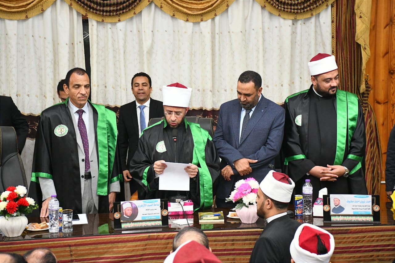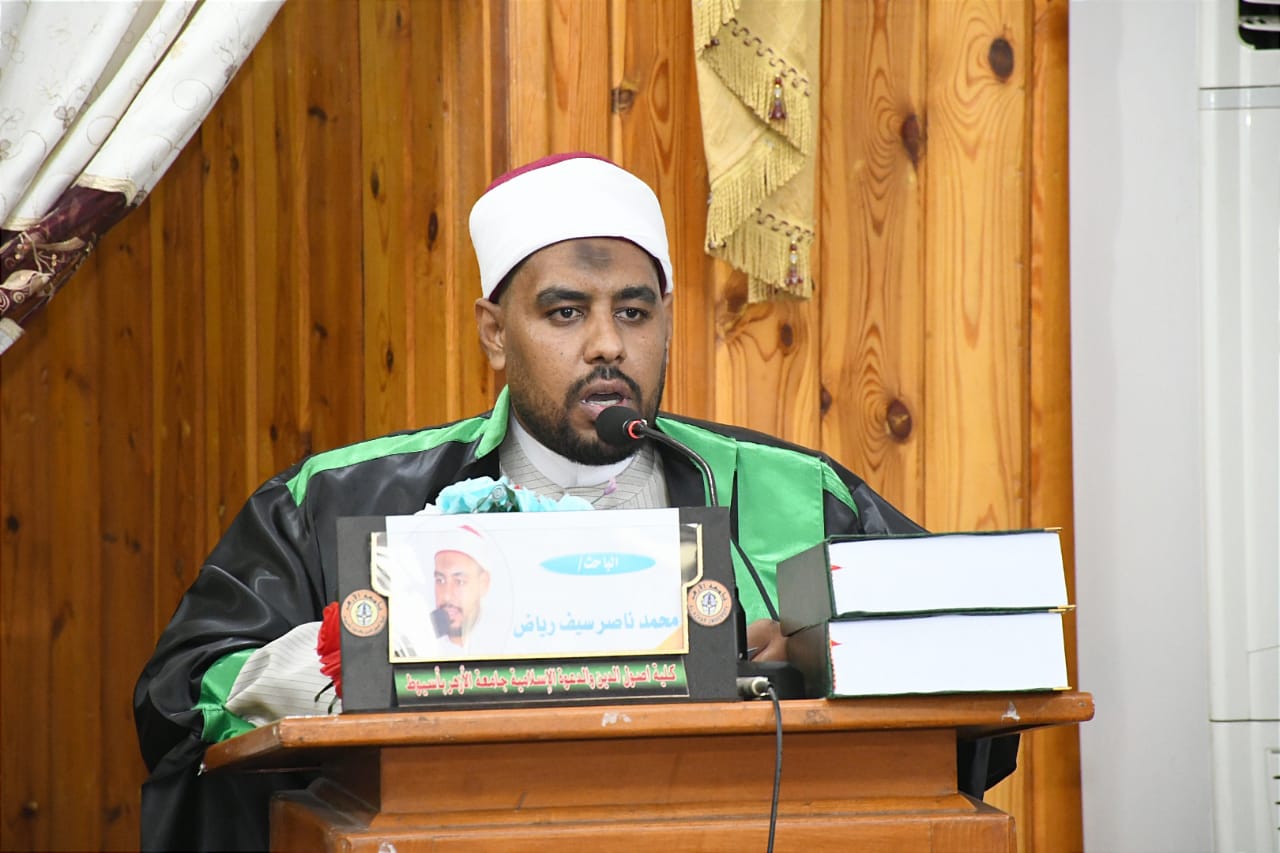 وأعرب الدكتور أسامة الأزهري عن تهنئة الباحث بأطروحته العلمية، سائلا الله تبارك وتعالى له السداد والتوفيق، ومهنئا أسرته، والكلية، وانتهت لجنة المناقشة والحكم إلى منح الباحث محمد ناصر سيف رياض درجة التخصص الماجستير في أصول الدين بالحديث الشريف وعلومه بتقدير ممتاز.