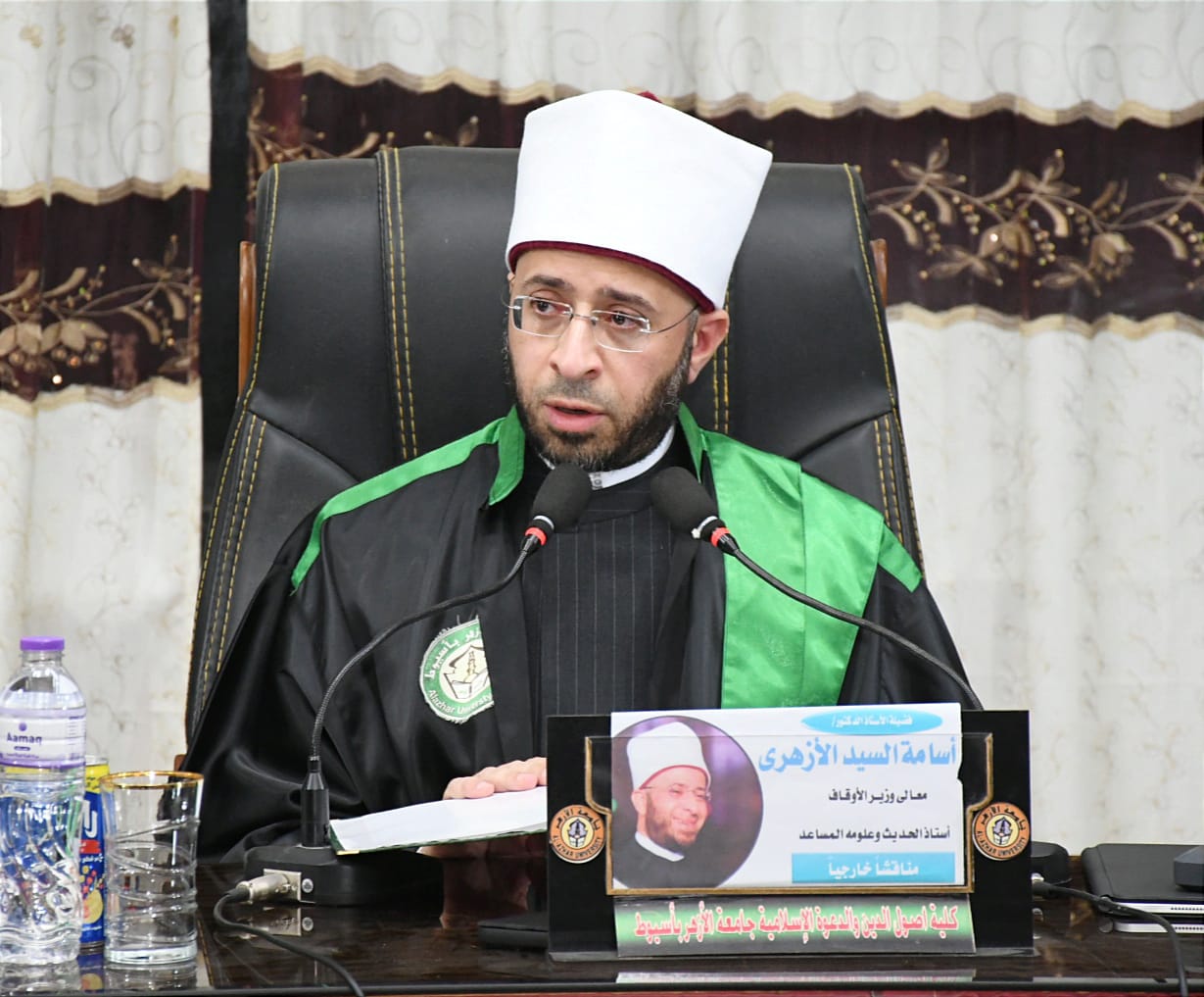 استقبل اللواء دكتور هشام أبو النصر محافظ أسيوط، الدكتور أسامة الأزهري، وزير الأوقاف بمطار أسيوط الدولي، حيث شارك الدكتور أسامة الأزهري، وزير الأوقاف، اليوم، في مناقشة رسالة الماجستير المقدمة من الباحث محمد ناصر سيف رياض، بعنوان: الأحاديث والآثار الواردة في كتاب «أدب الدين والدنيا » لأبي الحسن علي بن الماوردي (المتوفى سنة: 450 هـ) من أول الكتاب إلى نهاية الباب الثالث - أدب الدين... تخريج ودراسة، في قسم الحديث وعلومه من كلية أصول الدين والدعوة بأسيوط جامعة الأزهر.