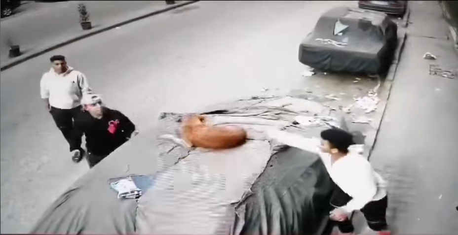 ويظهر خلال الفيديو، 3 صغار في أثناء سيرهم بشارع العشرين بمنطقة فيصل، يطعنون كلبا حال جلوسه أعلى سيارة، باستخدام أسلحة بيضاء، ولاذوا بالفرار، مما ترتب عليه إصابة الكلب بجروح بالغة بمحافظة الجيزة.