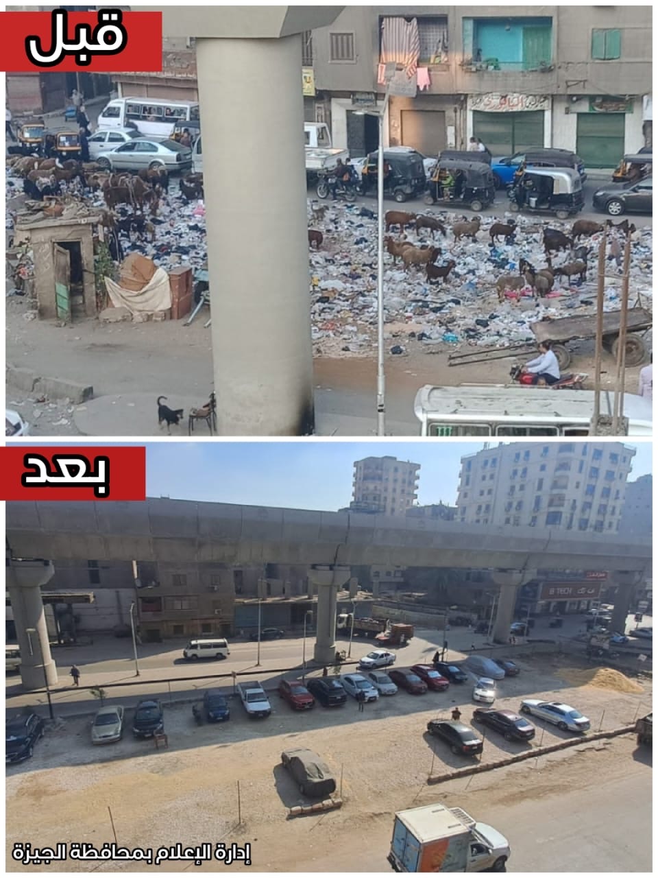 محافظة الجيزة تحول أرض موقف البوهي القديم من بؤرة للمخلفات إلى ساحة انتظار للسيارات