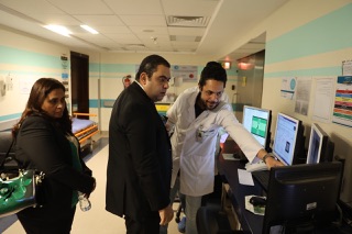 و أوضح عبدالله مجاهد مشرف فيزياء طبية ومسؤول وقاية إشعاعية طرق وممارسات الحماية من الإشعاع، حيث قام فريق الهيئة بجولة داخل أقسام الأشعة والإشعاع بالمستشفى.