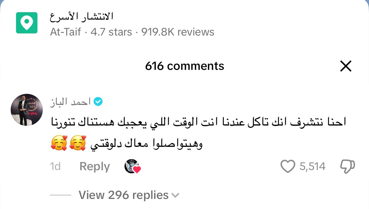 إحنا نتشرف إنك تاكل عندنا، وتعالى الوقت اللي يعجبك هستناك تنورنا.