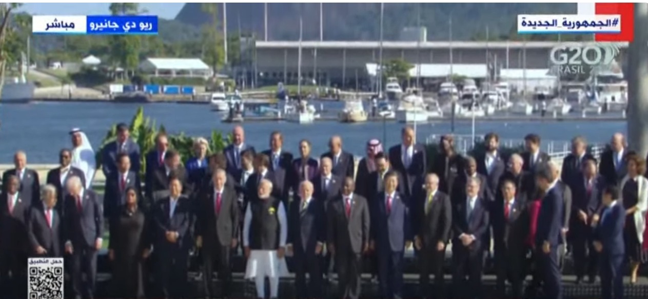 توسط الرئيس عبد الفتاح السيسي، صورة تذكارية للقادة والزعماء المشاركين في قمة العشرين، بمدينة ريو دي جانيرو بالبرازيل، وذلك وفقا لنبأ عاجل نقلته فضائية اكسترا نيوز.