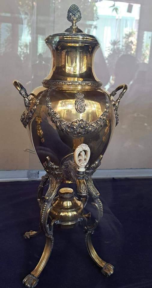 ويعرض أيضا جزءًا من طاقم شاي مصنوع من الفضة المذهبة تستخدم لتقديم المشروبات لضيوف احتفالية افتتاح قناة السويس، ويستمر المعرض من17 نوفمبر إلى نهاية الشهر.