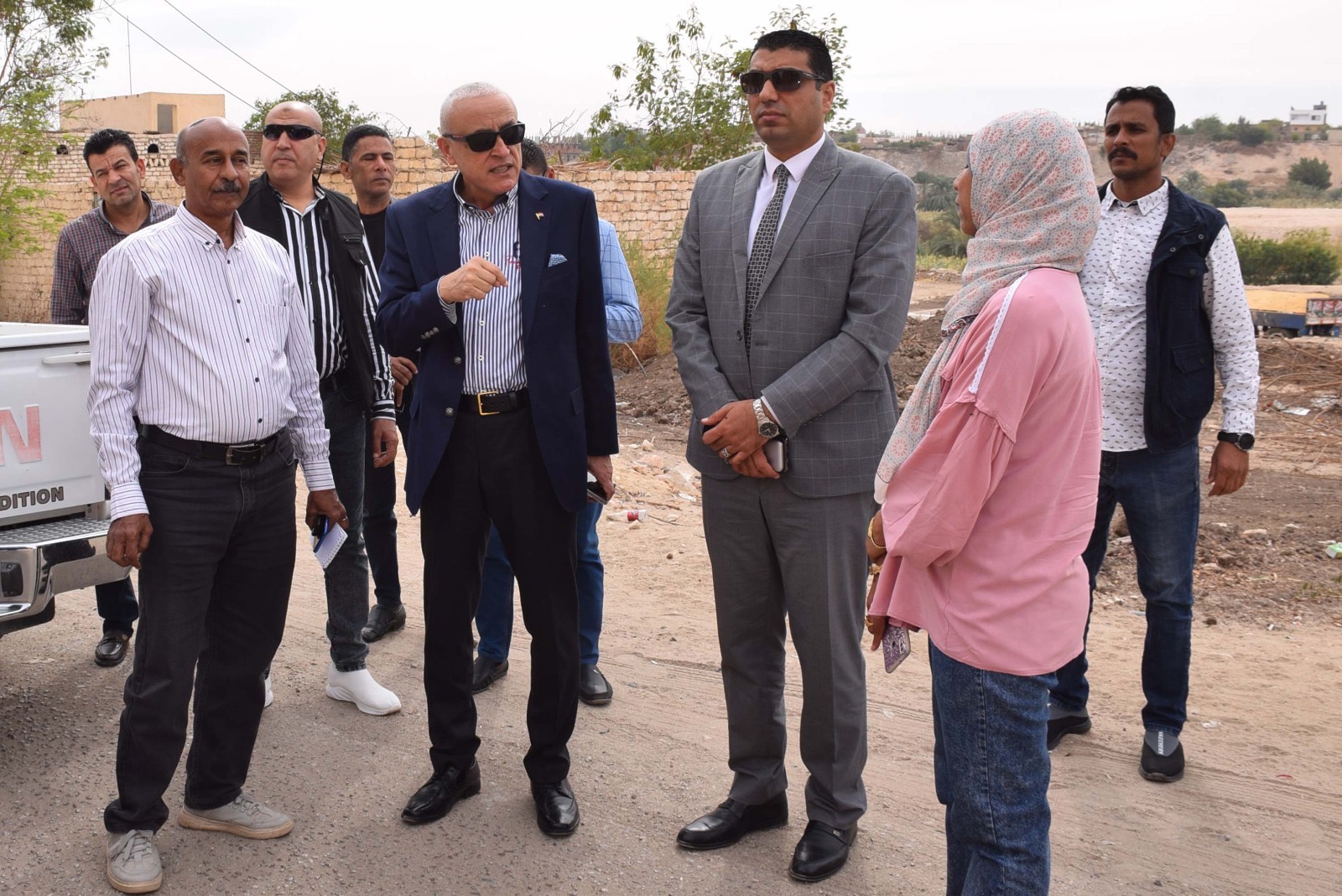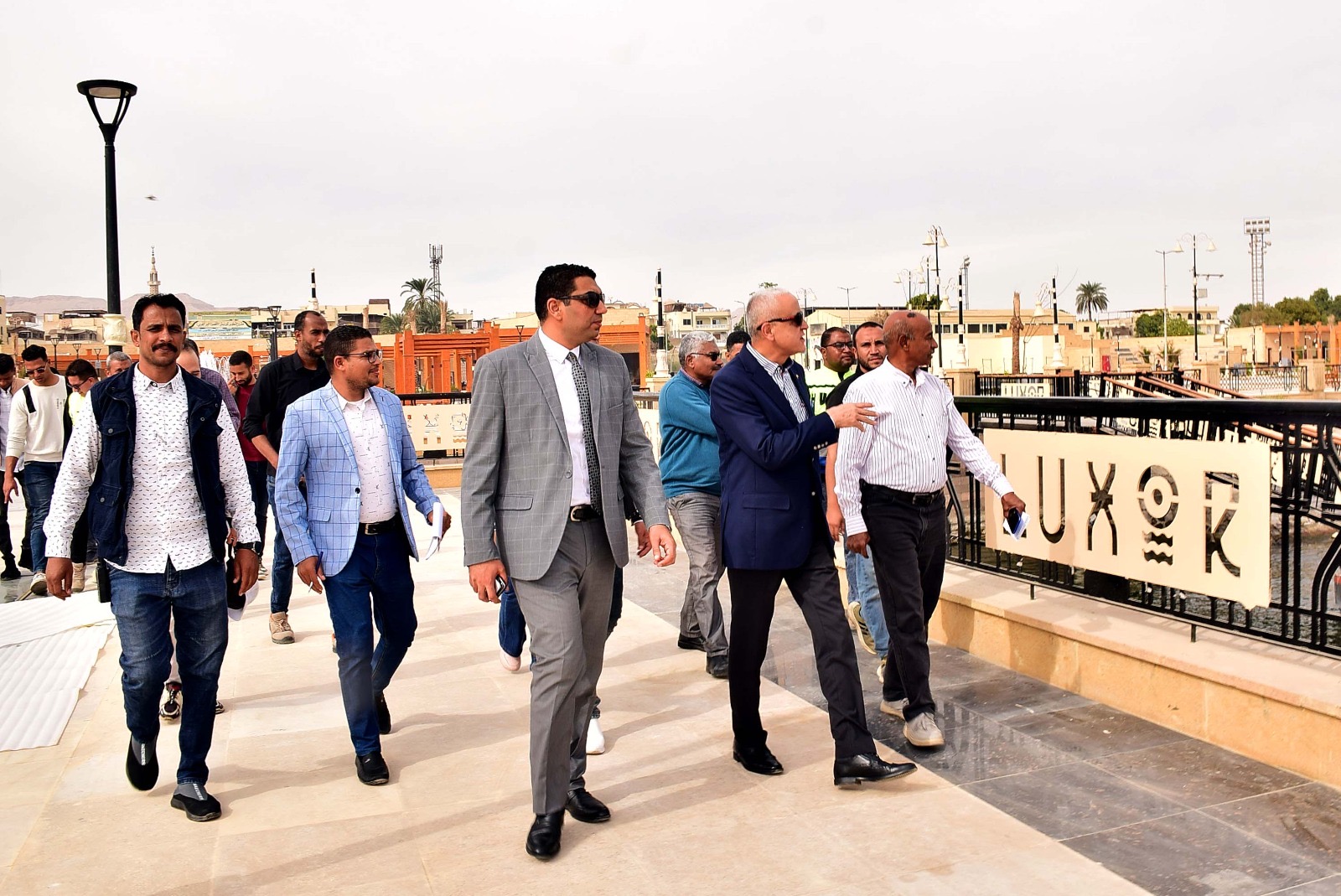 رافق المحافظ خلال جولته بمركز القرنة الدكتور هشام أبو زيد نائب محافظ الأقصر، ومصطفى جبريل رئيس مركز ومدينة القرنة، والمهندسة إلهام شيباني مدير مديرية الطرق والنقل، والدكتور ياسر الصاوي مدير إدارة الحدائق والبساتين، والمهندس أسعد مصطفى منسق مشروعات الجهاز المركزي للتعمير بالأقصر.