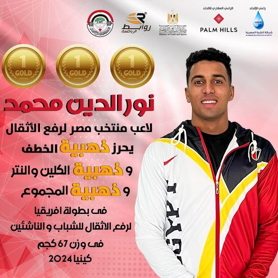 وزير الرياضة يهنئ نور الدين محمد لفوزه بـ3 ميداليات ذهبية في بطولة إفريقيا لرفع الأثقال