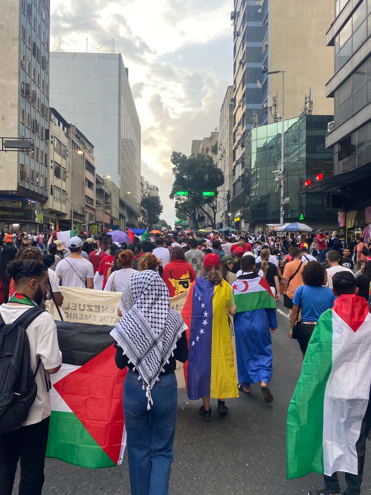 نظم آلاف الطلاب الفنزويليين مسيرة طلابية دعمًا لفلسطين جابت شوارع العاصمة كاراكاس، وصولًا إلى القصر الرئاسي للرئيس الفنزويلي نيكولاس مادورو.