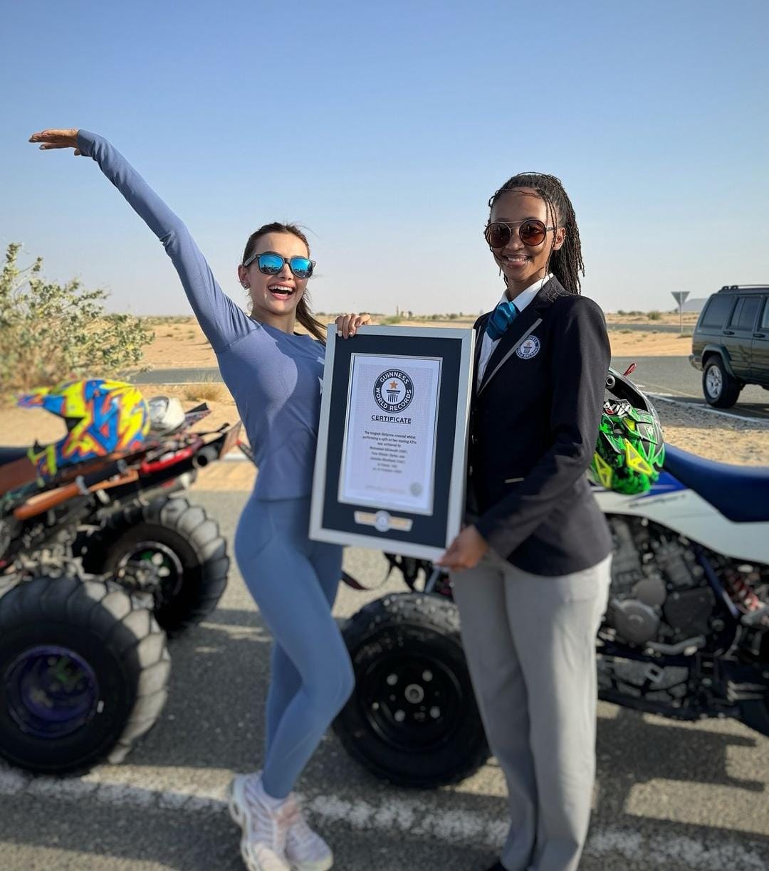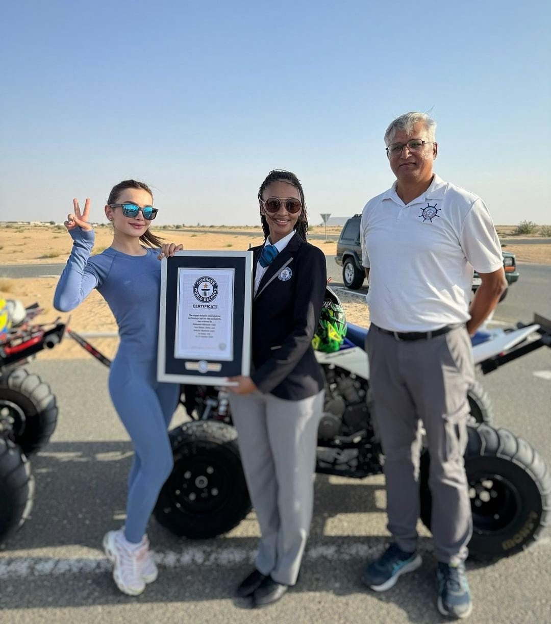 ونشرت الصفحة الرسمية لموسوعة جينيس، مقطع فيديو لـ يارا خضير، توثق نجاحها، معلقة: أطول مسافة يتم قطعها في وضعية السبليت على مركبات الدفع الرباعي من قبل كل من يارا خضير، محمد البلوشي، وعبد الله الحطاوي، خلال فعاليات اليوم العالمي لموسوعة جينيس القياسية.