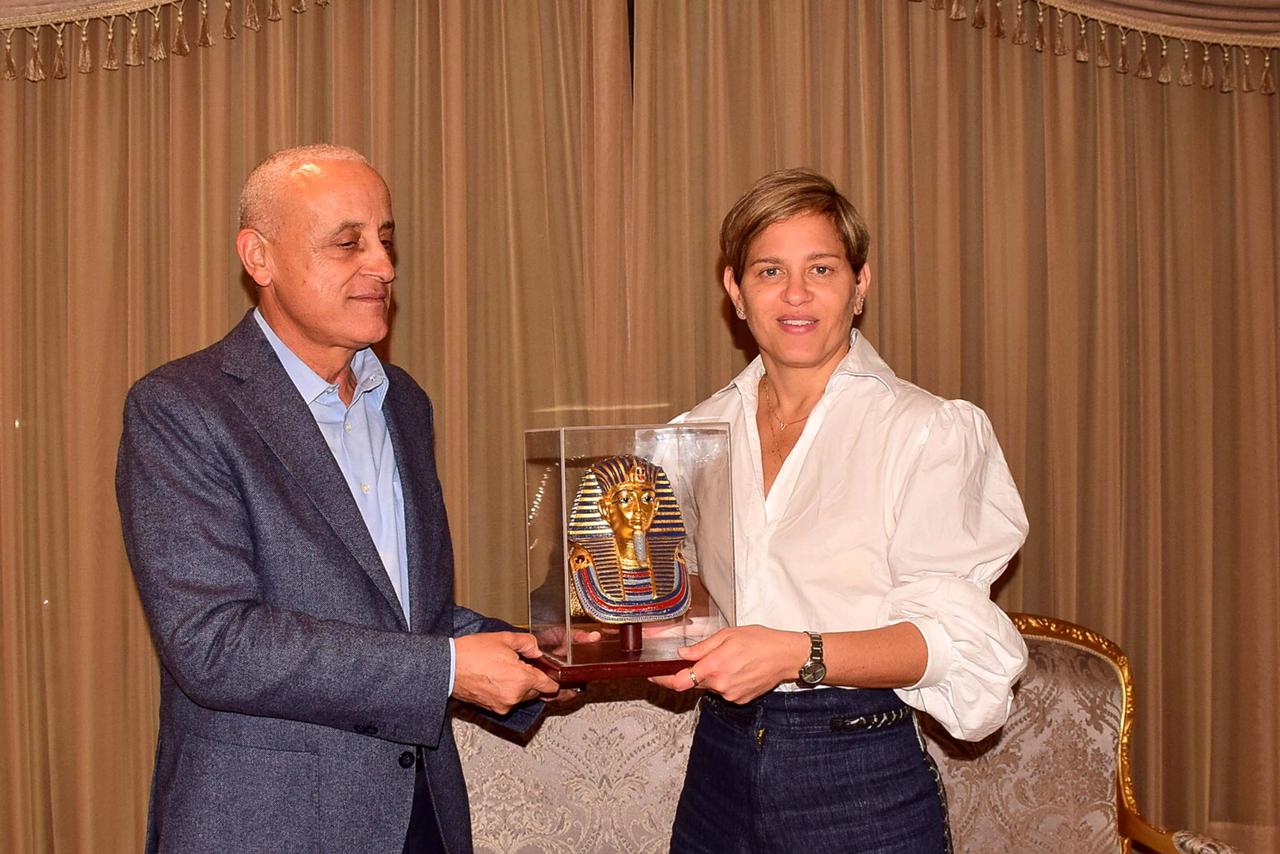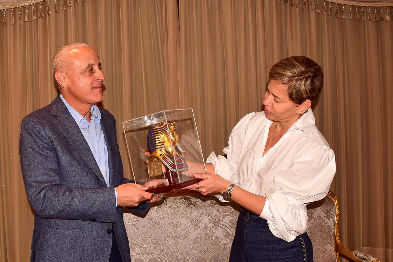 محافظ الأقصر يهدي السيدة الأولى بكولومبيا مجسم قناع توت عنخ آمون| صور