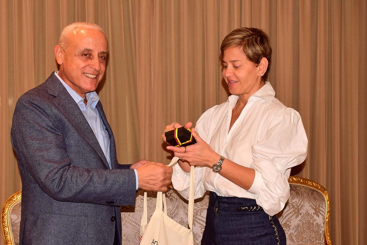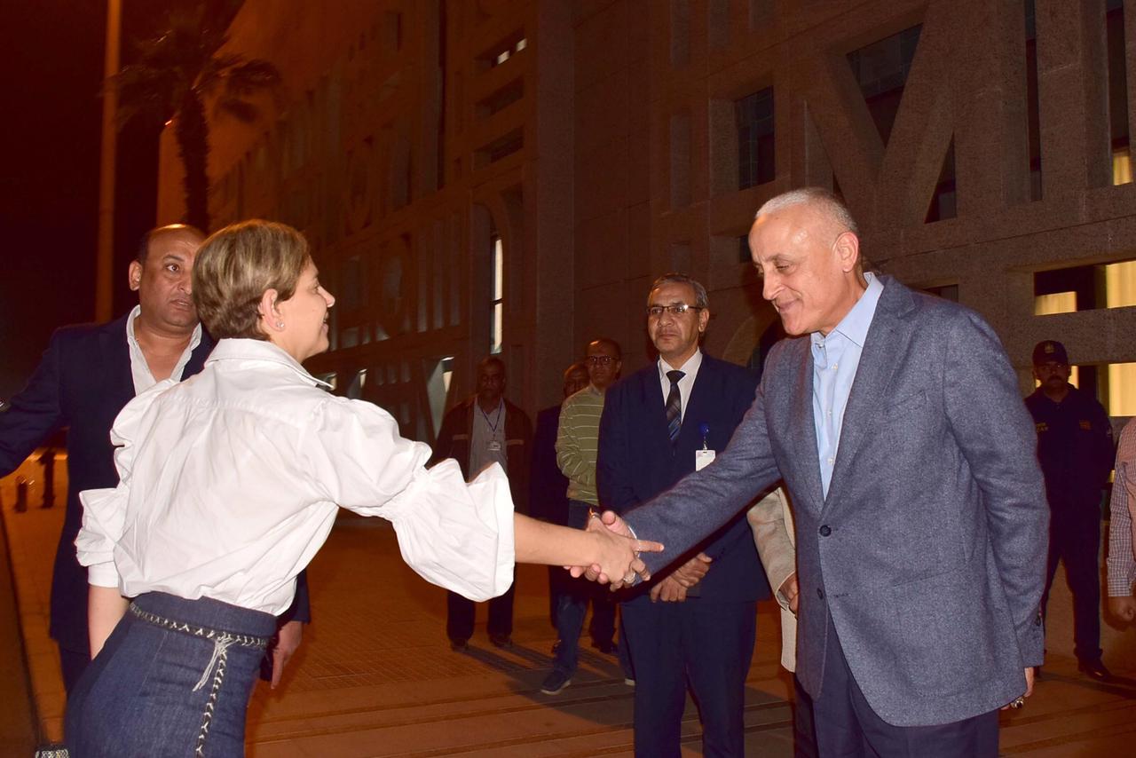 وودع محافظ الأقصر، قرينة رئيس كولومبيا، لدى مغادرتها للمحافظة، وقدم لها هدية تذكارية عبارة عن نموذج مصغر مقلد لقناع الفرعون الذهبي الصغير الملك توت عنخ آمون.