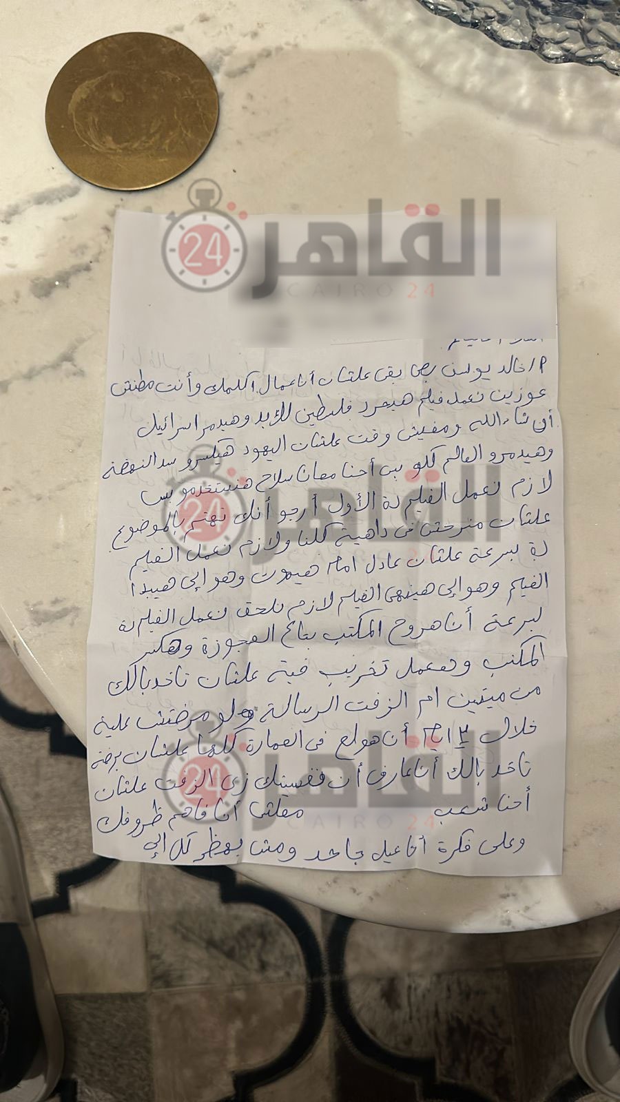 رسالة تهديد للمخرج خالد يوسف