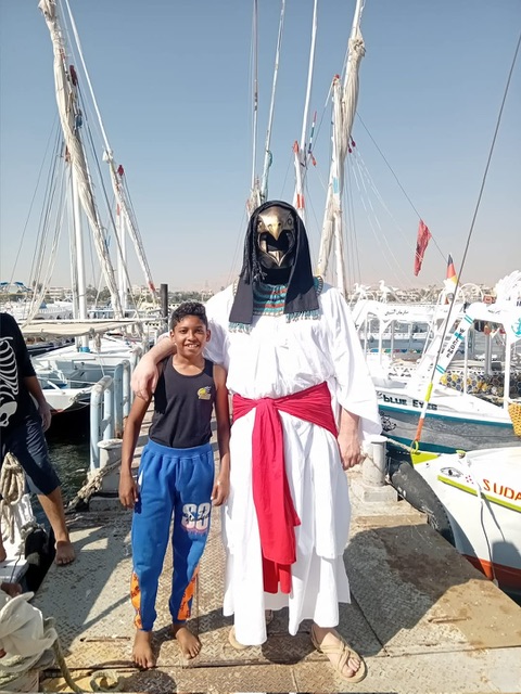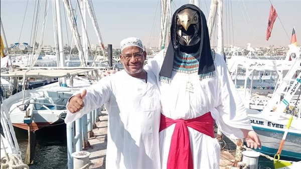 أثار ارتداء سائح ألماني الجنسية زي حورس، إعجاب أهالي الأقصر، على كورنيش النيل، حيث سارعوا بالتقاط الصور التذكارية معه.