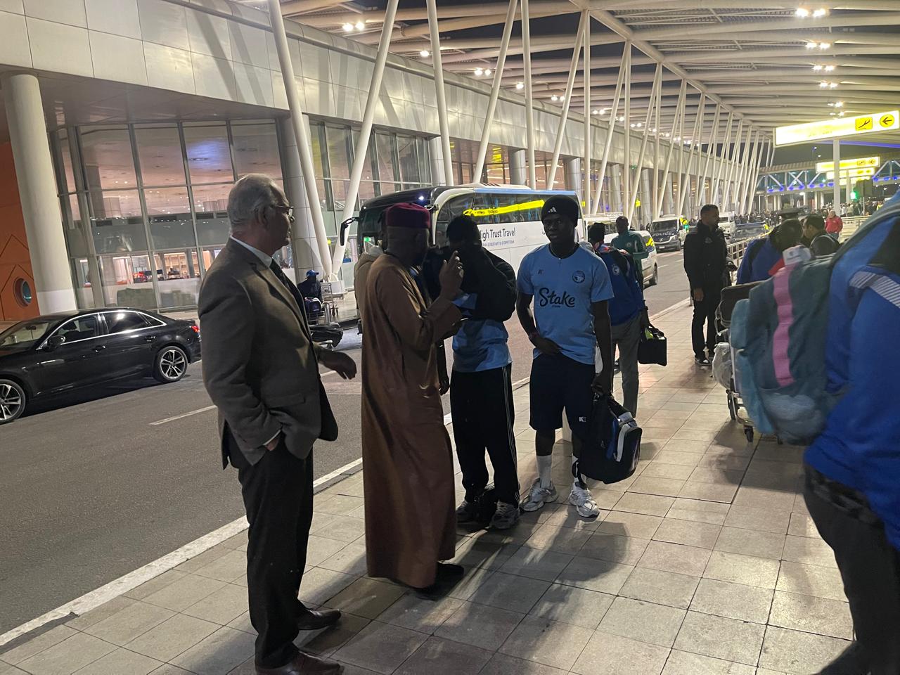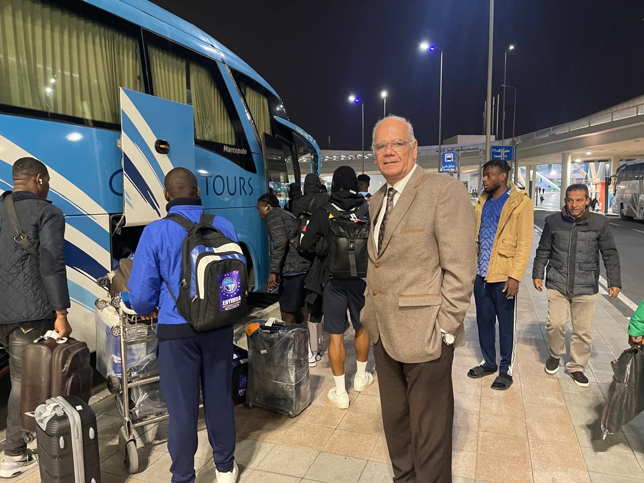 حيث تم استقبال طاقم التحكيم المالي بقيادة حكم الساحة بوبو تراوري ومراقب الحكام البنيني توماس بوكو، وكذلك الأوغنديين يوسف أويو مراقب المباراة وهمفري ماندو المنسق الأمني للمباراة، بالإضافة للمنسق العام للمباراة المالاوي تيانجاني باندا وأيضا المصري محمد السيسي المنسق الإعلامي للمباراة ومعه مسئول البث محمد إسماعيل.