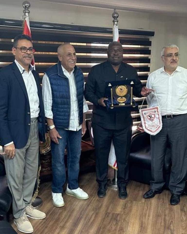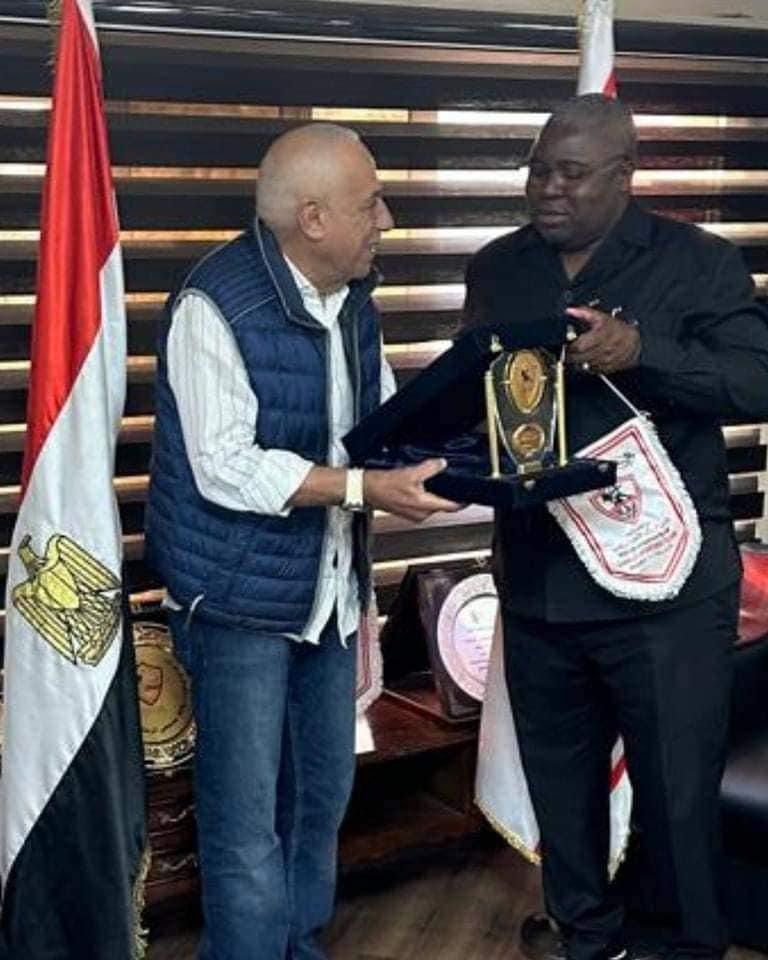 حسين لبيب يستقبل رئيس الاتحاد الناميبي ويُهديه درع وعلم النادي على هامش زيارته للقاهرة