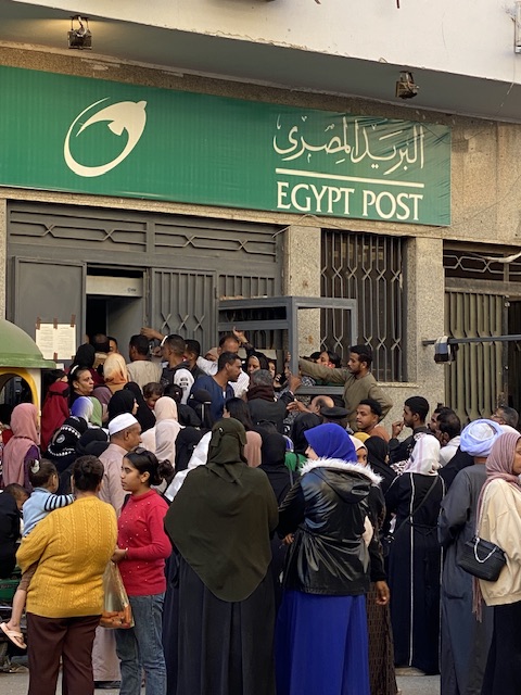 واصطف المواطنون في طوابير طويلة من الرجال والنساء امتدت من داخل مكاتب البريد، وحتى خارج الشارع، كما رصدتها عدسة القاهرة 24 في بث مباشر من مكتب بريد الأقصر الرئيسي بمنطقة المنشية وسط المدينة.