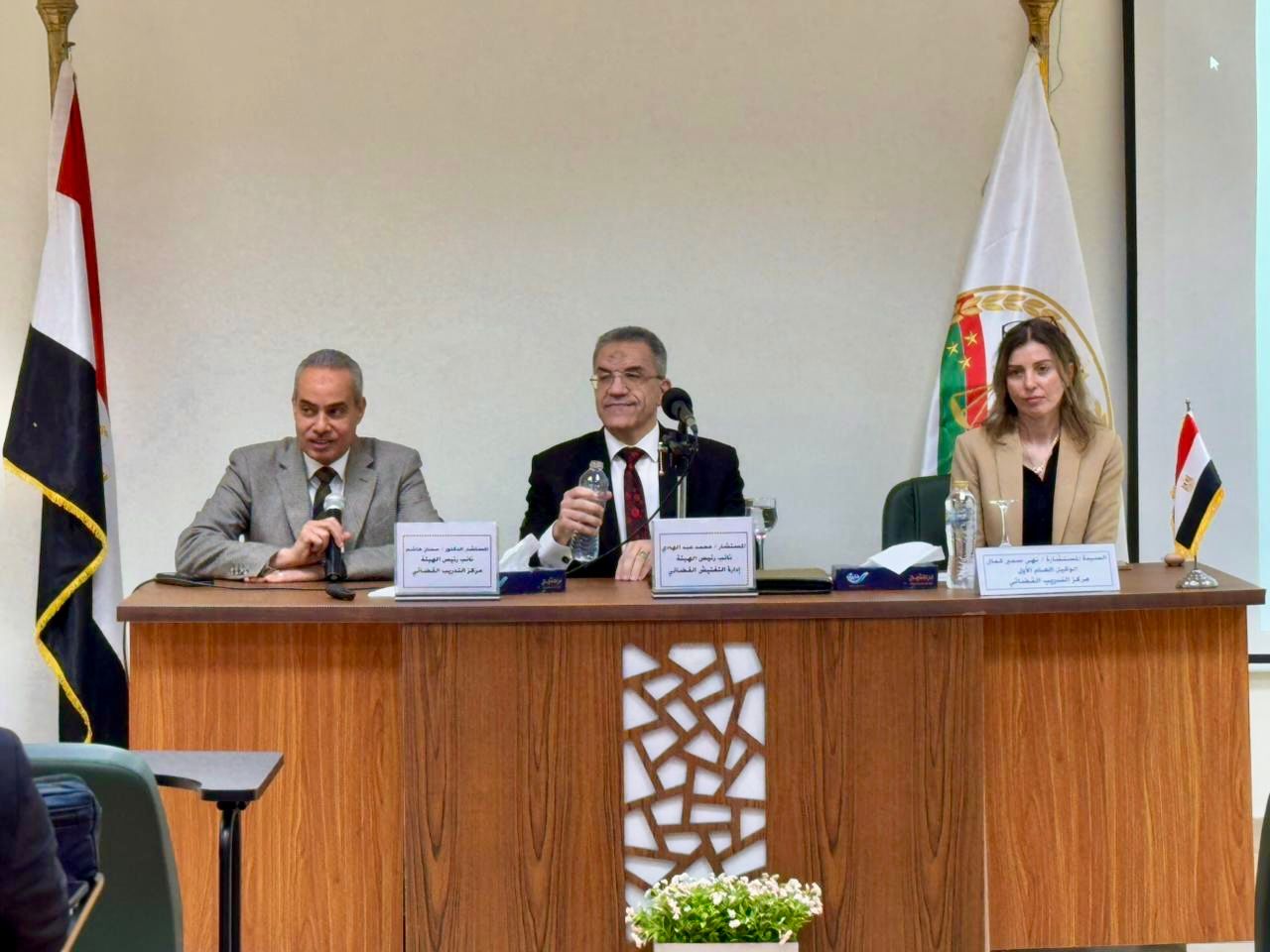 - الأخطاء الشائعة في إجراءات التحقيق والتصرف القضائي، والإشكاليات القضائية المرتبطة بالتحقيق والتصرف وتفضل بإلقائها المستشار محمد عبد الهادي نائب رئيس الهيئة بإدارة التفتيش القضائي.