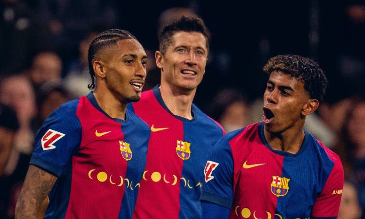 - خط الهجوم: بيدري – رافينيا - ليفاندوفسكي.