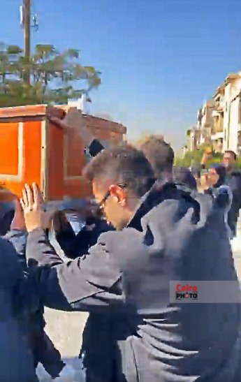 ورافق حمادة هلال جثمان والد زوجته، وحرص على حمل النعش إلى مسجد فاطمة الشربتلي بالتجمع الخامس، وظهر في حالة من الحزن والصدمة، لفقد والده الثاني.