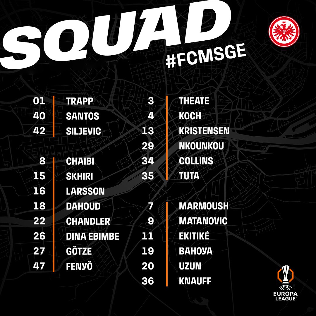 قائمة فريق آينتراخت فرانكفورت لـ المباراة المقبلة في الدوري الأوروبي