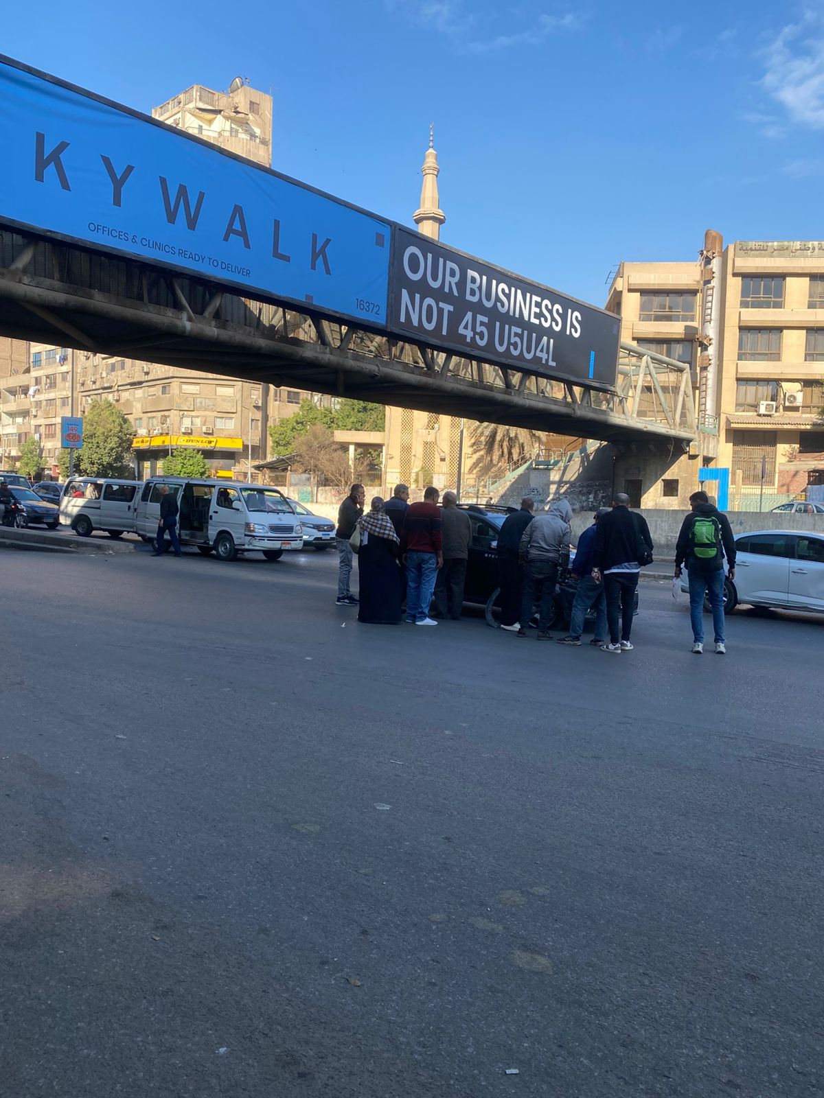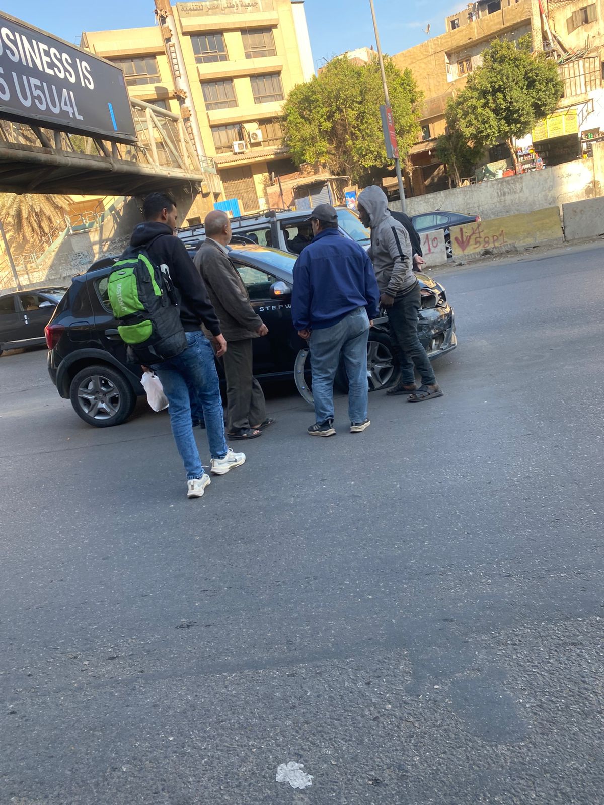 تصادم سيارة ملاكي مع ميكروباص أسفل المحور بالقرب من ميدان لبنان | صور