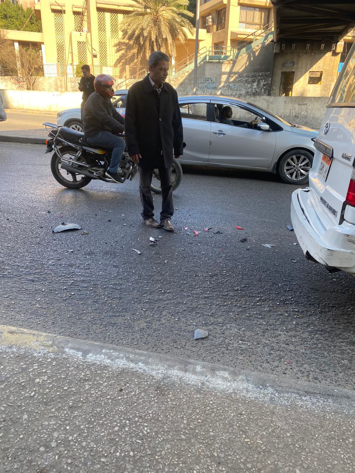 تصادم سيارة ملاكي مع ميكروباص أسفل المحور بالقرب من ميدان لبنان