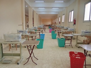 الدور العلوي: صالة بمساحة 600 متر مربع، مجهزة بخط إنتاج كامل لصناعة الملابس الجاهزة.