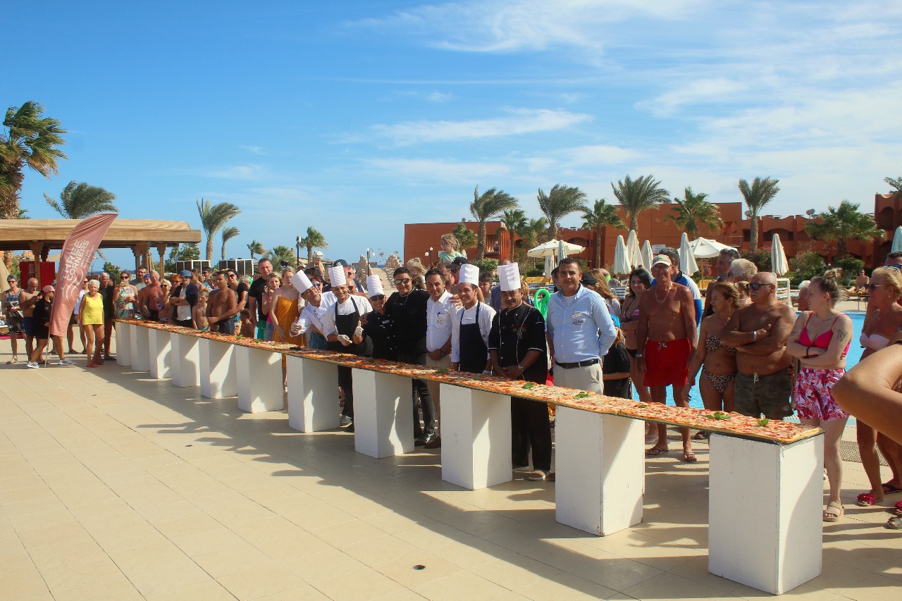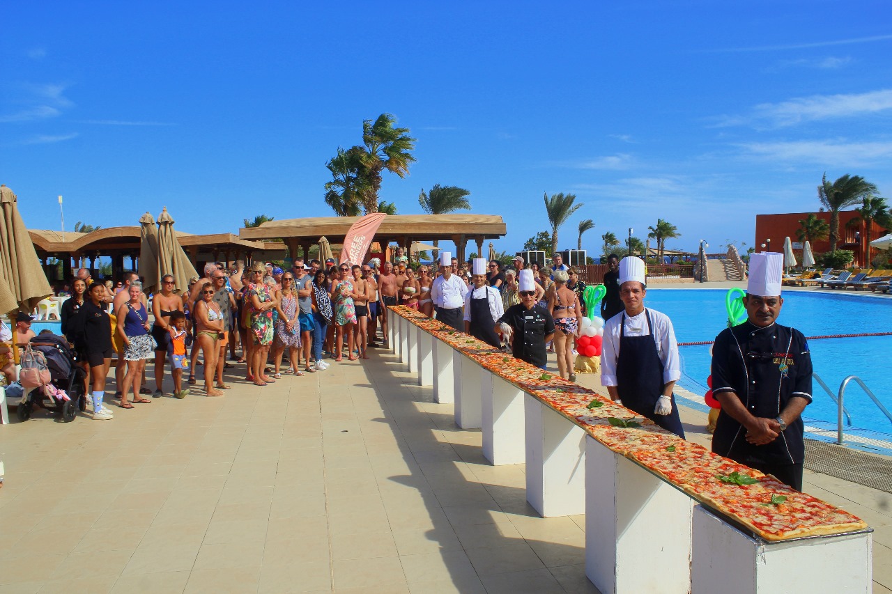 نظمت القرى والمنتجعات السياحية بمدينة مرسى علم جنوب البحر الأحمر، مهرجان البيتزا، بمشاركة 15 شيف لتقديم أطول بيتزا يصل طولها إلى 15 مترا.